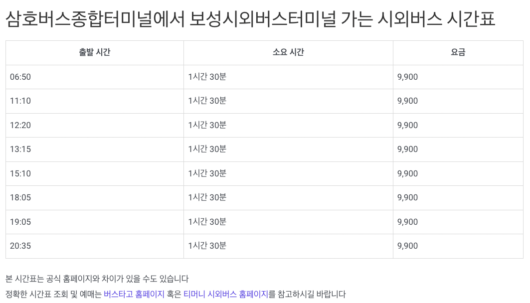 삼호버스터미널 시간표 안내는 위 페이지를 참고하시길 바랍니다.