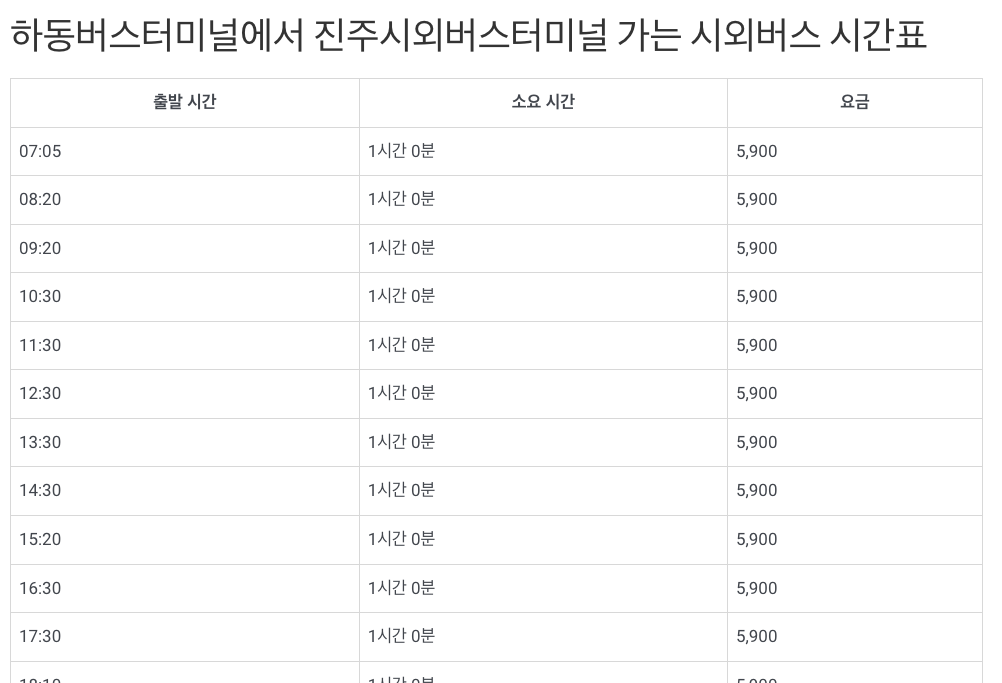 하동버스터미널 시간표는 위 페이지에서 조회하시길 바랍니다.