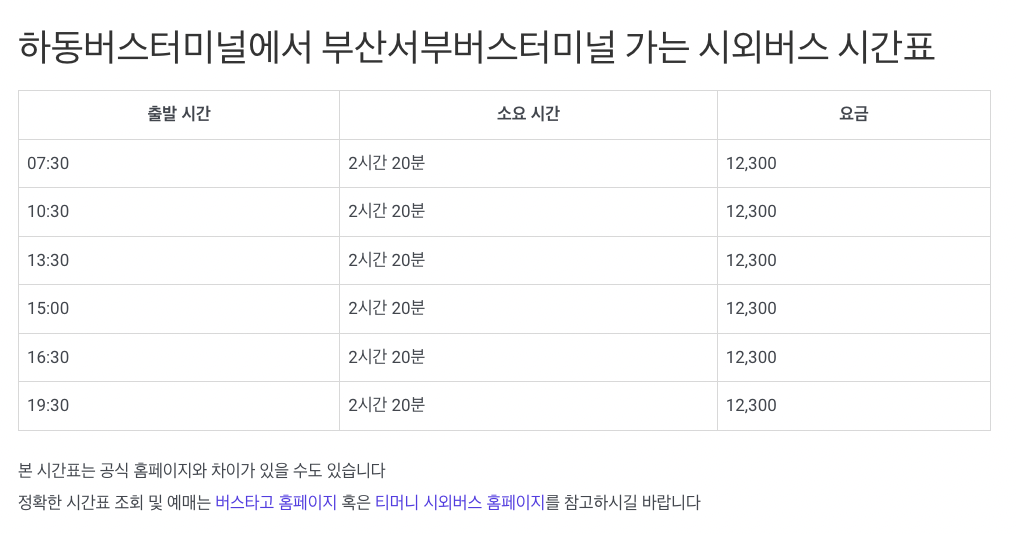 하동버스터미널 시간표는 위 페이지에서 조회하시길 바랍니다.