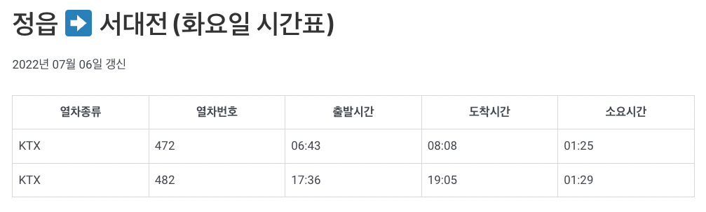 정읍역 KTX 시간표 - monoalda