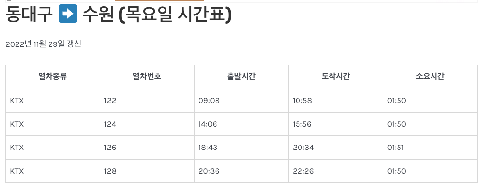 이상 동대구역ktx열차 시간표였습니다
