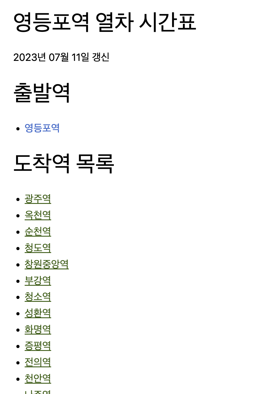 영등포역 기차시간표