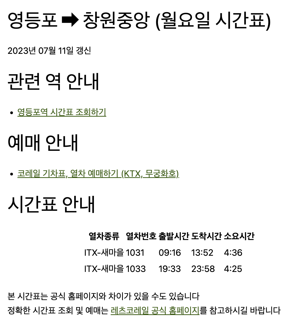 영등포역 시간표 (KTX, 일반 열차, 기차시간표) - MONOALDA