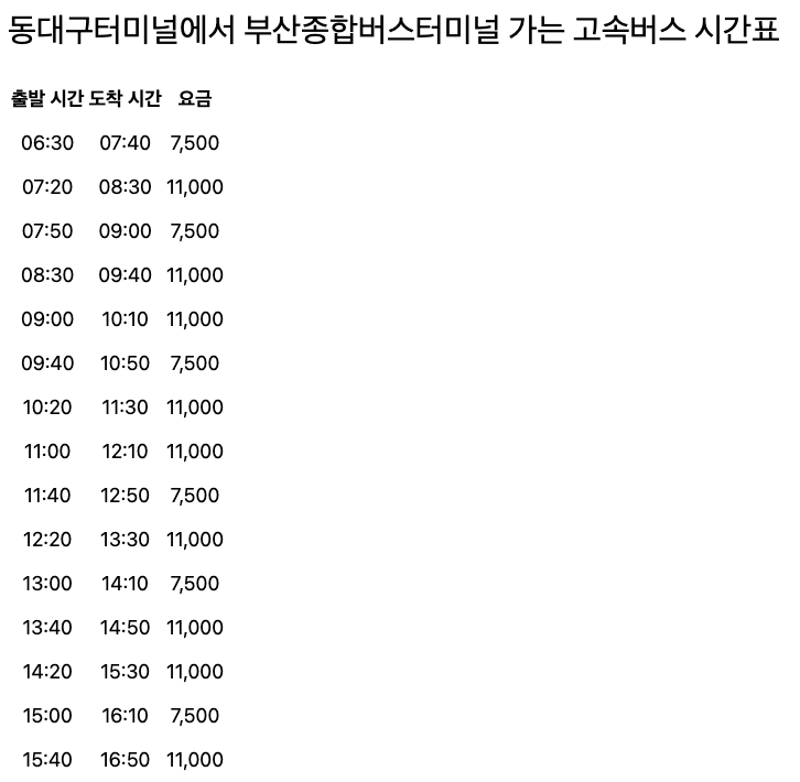 동대구시외버스터미널 시간표 조회하기