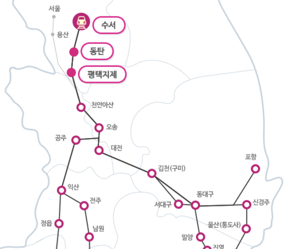 원래 KTX만 다니던 곳이 SRT도 정차하게 되었습니다.