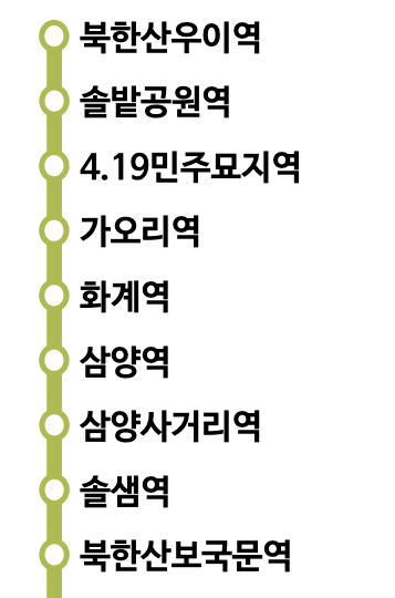 주요 역은 북한산우이역, 성신여대입구역, 신설동역입니다.