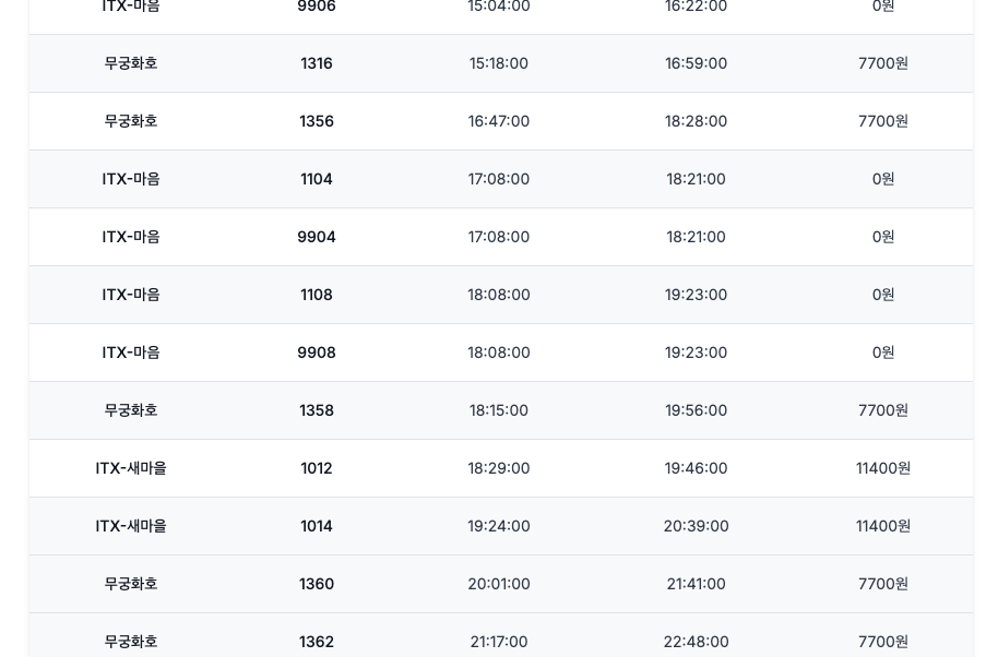 부산역 기차 시간표는 위 페이지 참고 바랍니다.