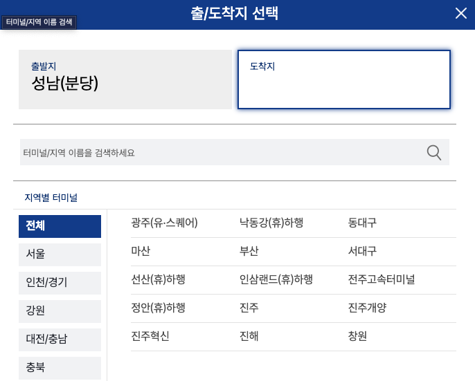 성남임시버스터미널 고속버스 시간표 - 모든버스노선도